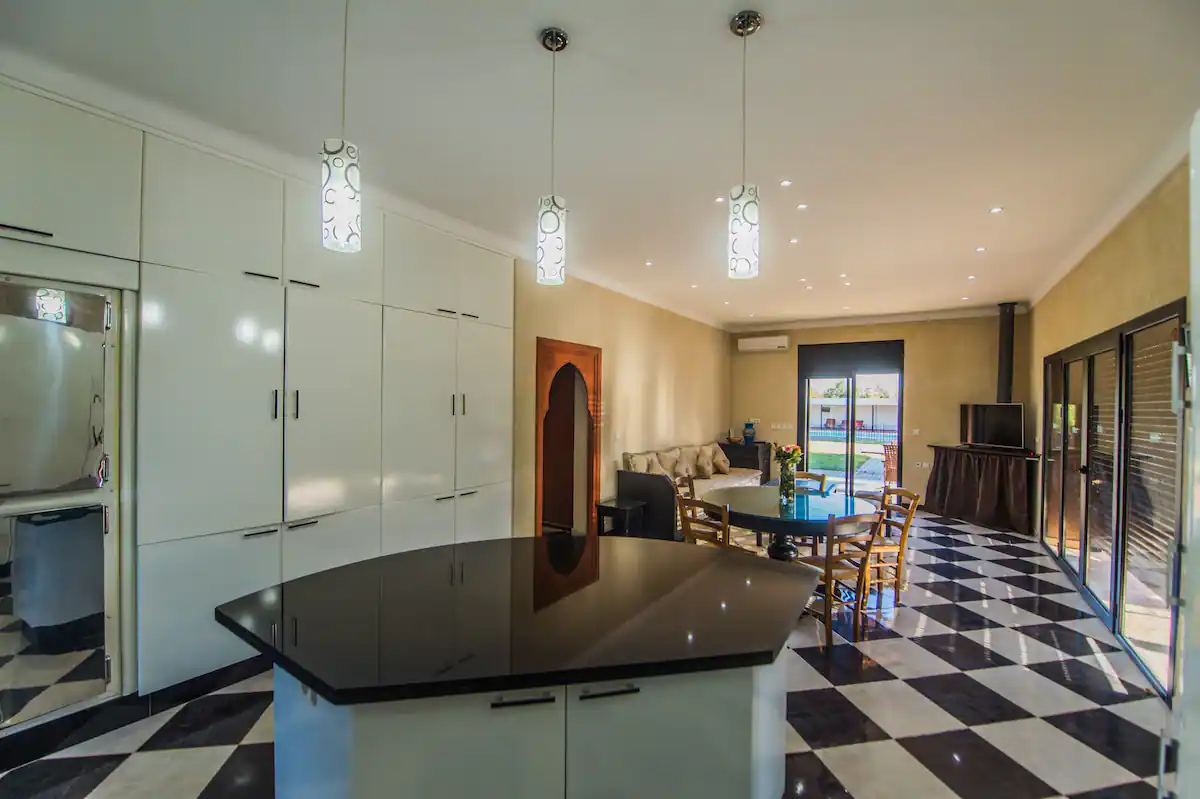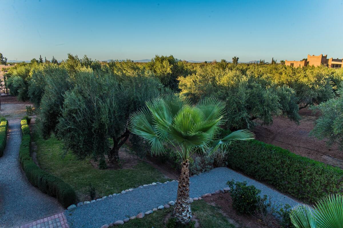 Profitez en famille de ce fabuleux logement qui offre de bons moments en perspective. Lieu d’évasion idéal, la Villa est une villa avec du personnel, une villa de luxe privée et située dans la ferme Sidi Safou a Douar Saada, à courte distance du centre de Marrakech. La villa dispose d’un hall d’accueil d’un rouge luxuriant et d’une élégante piscine. Située dans ses propres jardins privés, elle offre six chambres avec salles de bain privative, deux salons et cuisine.