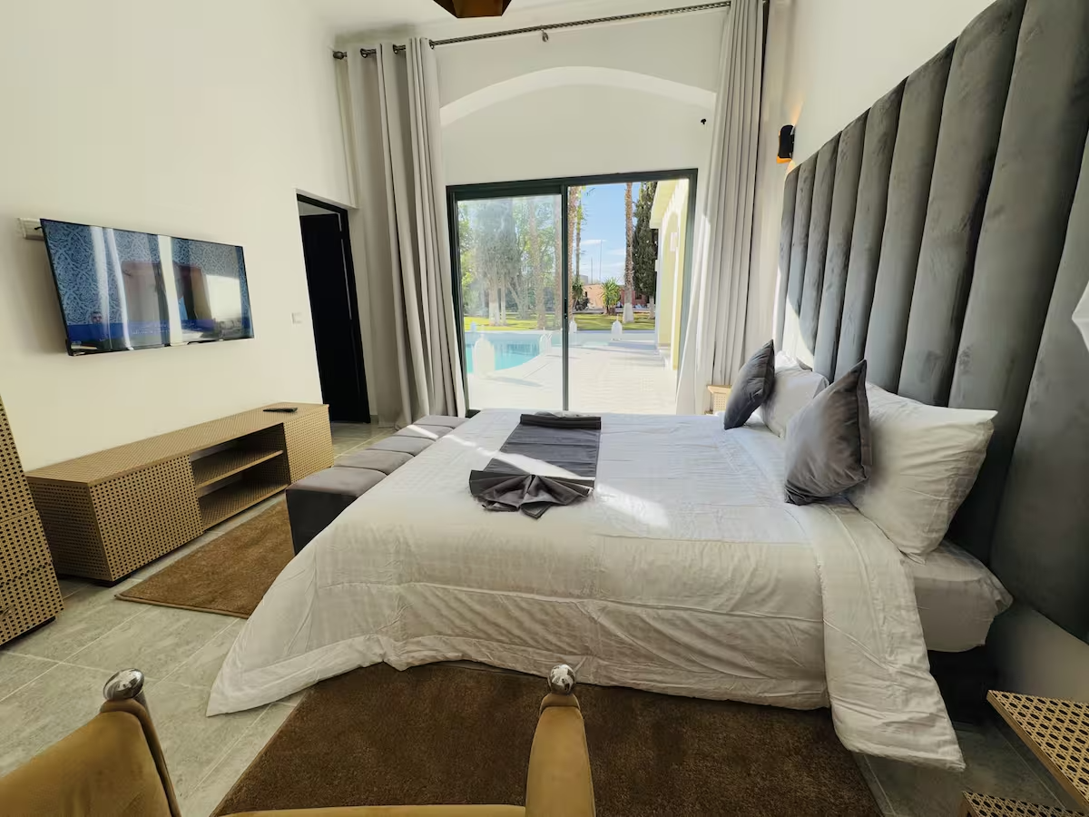 Très jolie Villa de Charme nichée en bordure du canal Zarraba à Marrakech. Idéale pour les familles, les groupes d’amis et les golfeurs, notre villa vous séduira par sa grande convivialité, et sa piscine privative. La Villa Irina vous accueille avec son grand séjour très lumineux et sa salle à manger communicante propice aux repas en famille ou entre amis. La villa est très agréable à vivre en toutes saisons en profitant de l’ouverture directe sur la piscine et le jardin. Les 9 grandes chambres sont agrémentées d’une grande salle de bains très confortable, permettent à la villa d’accueillir jusqu’à 18 couchages. A l’extérieur, la vie est douce ; vous pourrez profiter de la belle piscine privative équipée de bains de soleil ainsi que de la terrasse ombragée, sur laquelle vous pourrez prendre vos repas matin, midi et soir. Nos services de conciergerie termineront de parfaire votre séjour : repas à domicile, transferts aéroports, service de courses, masseuse, activités extérieures, tout est prévu pour vous apporter le meilleur service.