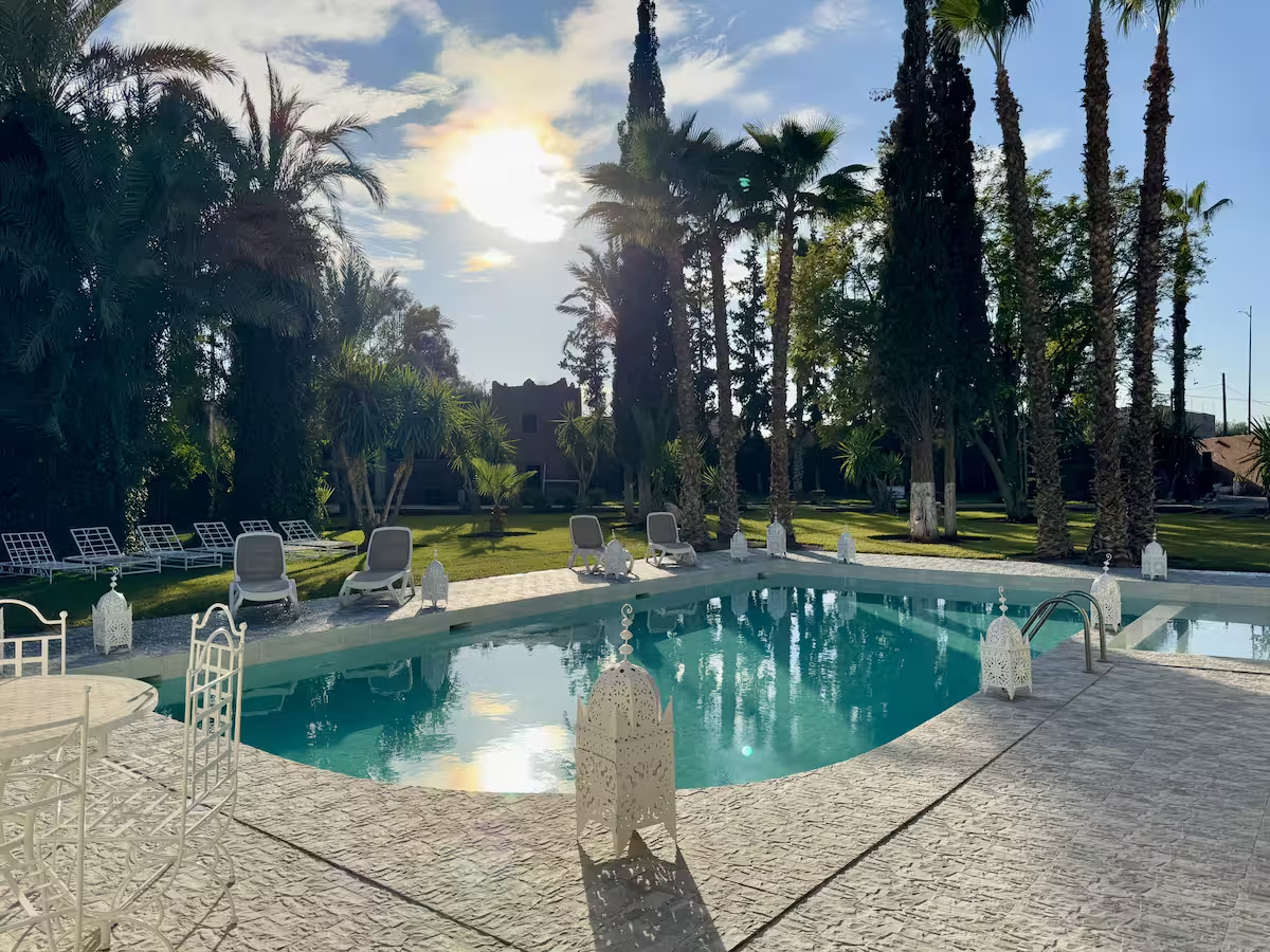 Très jolie Villa de Charme nichée en bordure du canal Zarraba à Marrakech. Idéale pour les familles, les groupes d’amis et les golfeurs, notre villa vous séduira par sa grande convivialité, et sa piscine privative.