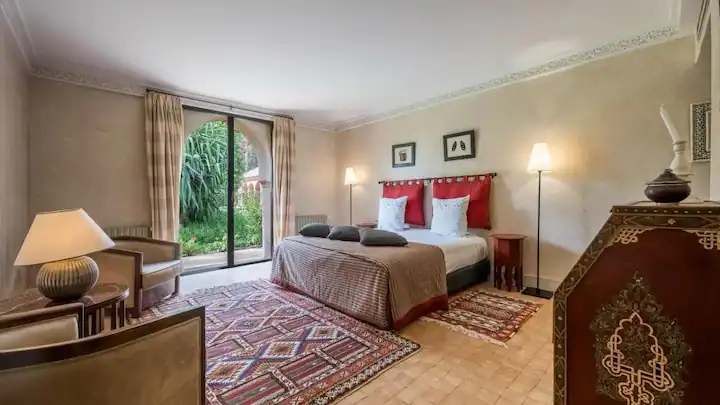 Située à proximité des principaux points d’intérêt de Marrakech, la villa permet un accès facile aux golfs de la Palmeraie, aux souks animés de la médina, et aux célèbres jardins de Majorelle. Des activités telles que des balades à dos de chameau, des excursions dans le désert et des visites culturelles peuvent également être organisées.